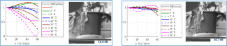Figure : FTM pour différentes valeurs du champ et images au champ maximal après déconvolution. (A gauche) Optique optimisée de manière conventionnelle. (A droite) Optique co-conçue.