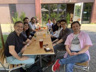 A la Kfet de l'Institut d'Optique, 4 octobre 2022: Matthieu Greffet, Aurelian Loirette--Pelous (PhD 2023), Pr. Jean-Jacques Greffet, Elise Bailly (PhD 2022), Nikos Fayard (Post-doc)